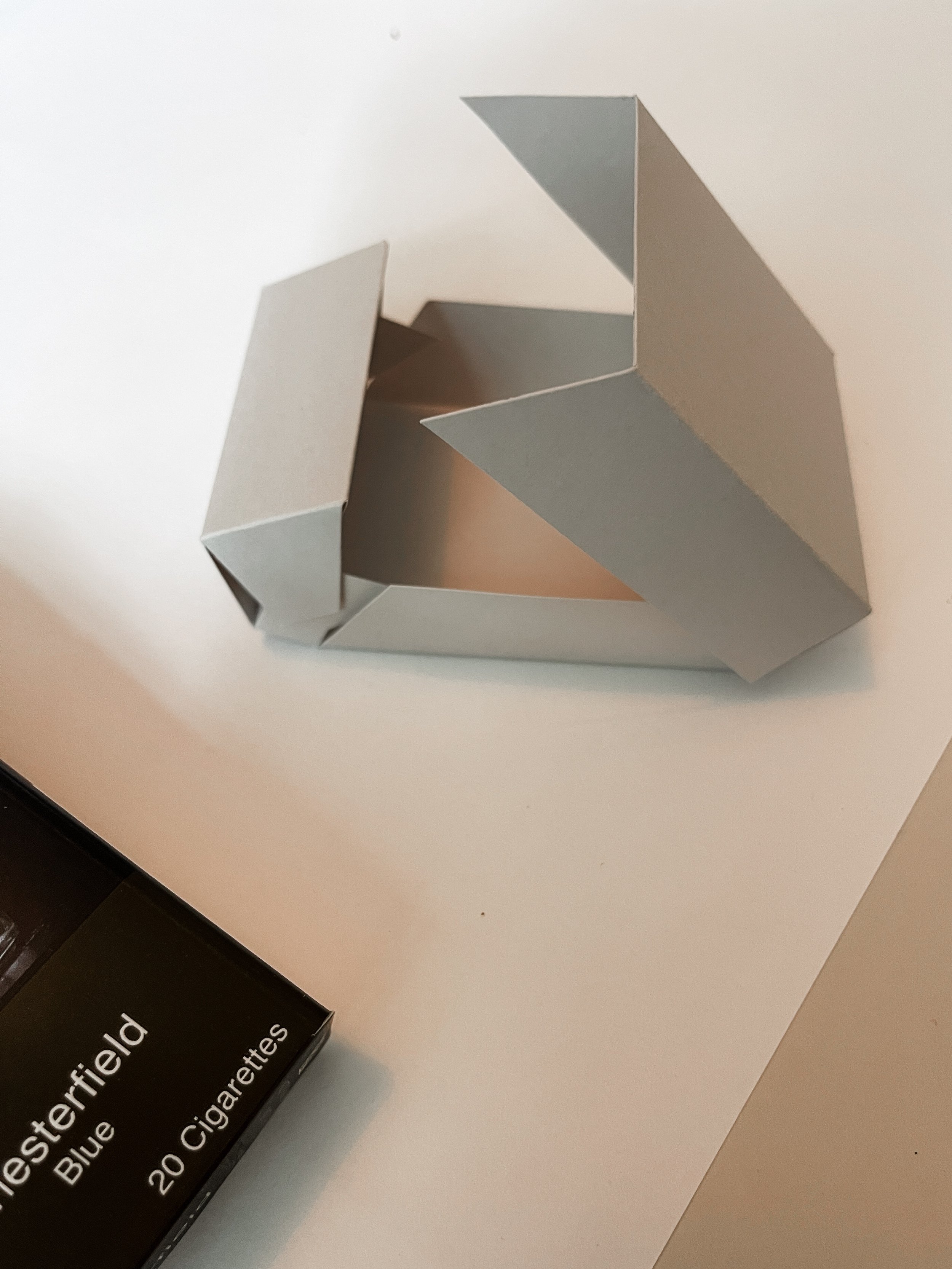 I’ve always been inspired by vintage cigarette packaging and advertising, and the fact I was re-watching Mad Men at the time probably had something to do with the theme of my idea… but I suddenly wanted to design something based on the phrase “back of the cigarette packet ideas”. I always carry a notebook, and I miss the spontaneity of scribbling on whatever’s within reach — a napkin, a cigarette packet, the back of your own hand. The notes app has become a stream of consciousness for us all, holding some of our most unhinged thoughts alongside this week’s shopping list. But where has that tactile connection to handwritten notes gone?