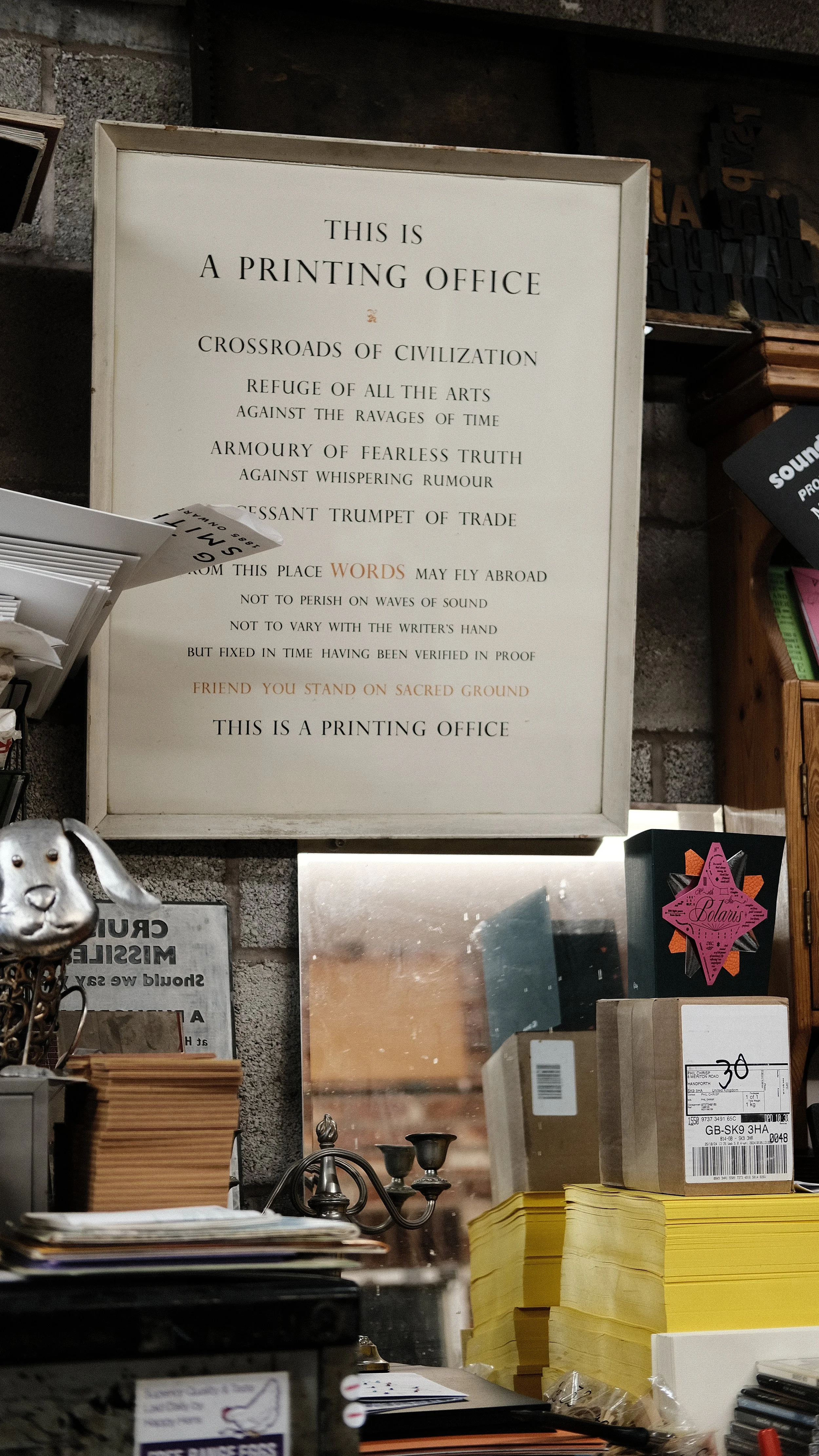 I sent my designs off to create a plate, and booked in with Phil to bring the idea to life on paper. That visit deserves its own story (and it will get one), but for now I’ll say this: seeing your design inked and pressed on a really old letterpress machine is something every designer should experience. It’s magic. Mechanical and meticulous and completely human.